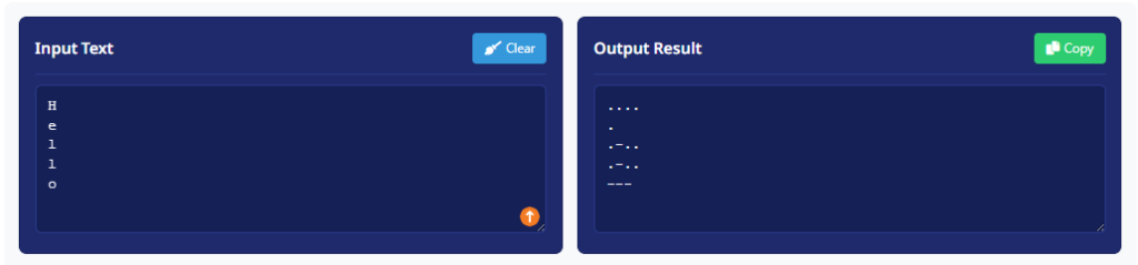 In written form, Hello is displayed using dots and dashes, making it easy to learn and recognize. It is frequently used in textbooks, online translators, and learning tools to demonstrate how words are formed in Morse code and how letter spacing works.